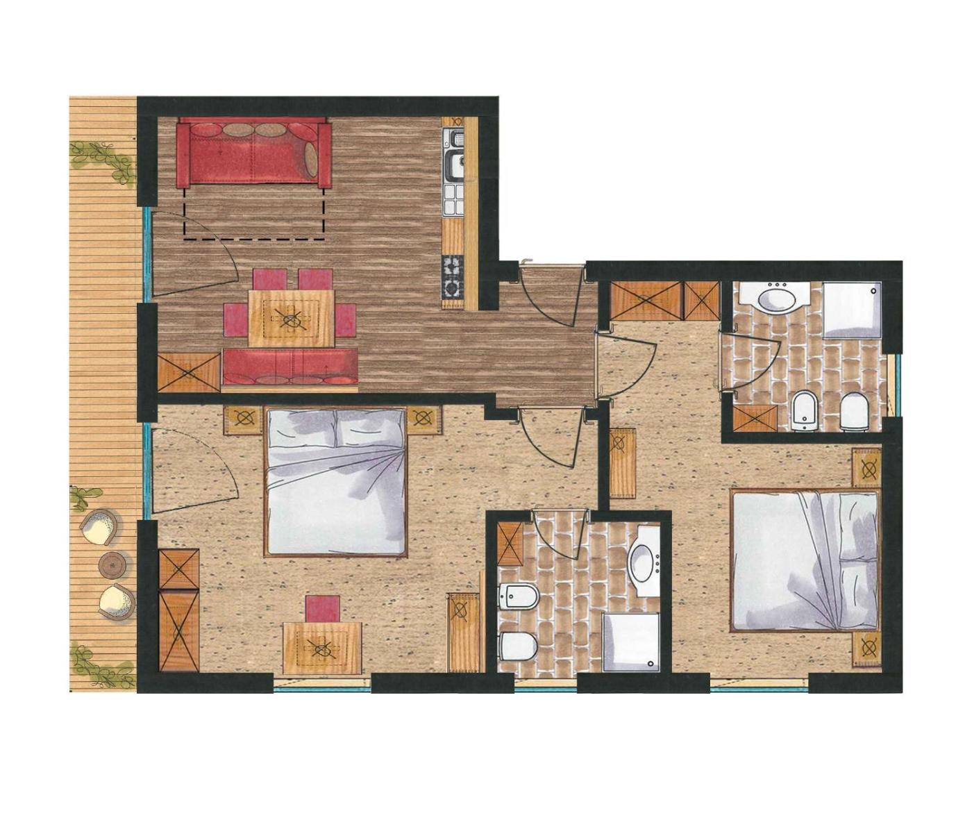 Appartamento Deluxe con 2 Camere da Letto e Vista Giardino. This apartment comprises 1 living room, 2 separate bedrooms and 2 bathrooms with a shower and free toiletries. Guests can make meals in the kitchen that comes with a dishwasher, kitchenware, a microwave and a toaster. Featuring a balcony with garden views, this apartment also provides a private entrance and a TV with satellite channels. The unit offers 3 beds.